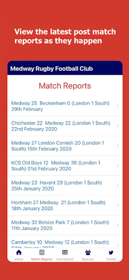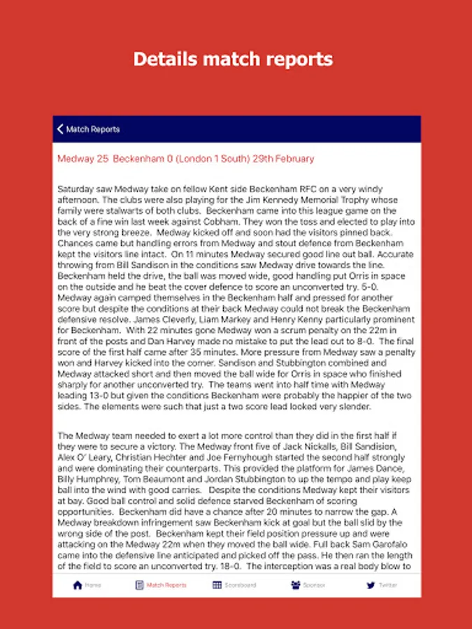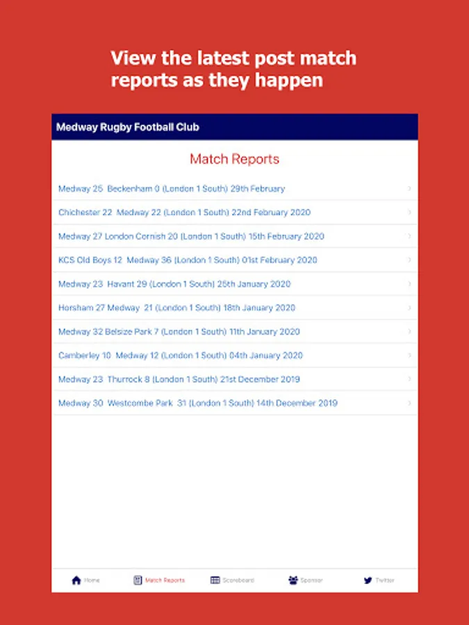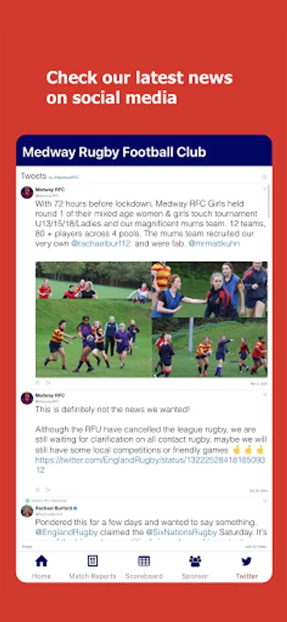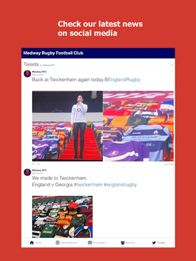 - Twitter: Read the latest social media activity on @MedwayRFC, share phots, videos and all things Medway Rugby Club