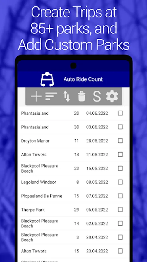 More info about which rides & parks are supported can be found at http://www.chriscoxmedia.co.uk/autoridecount