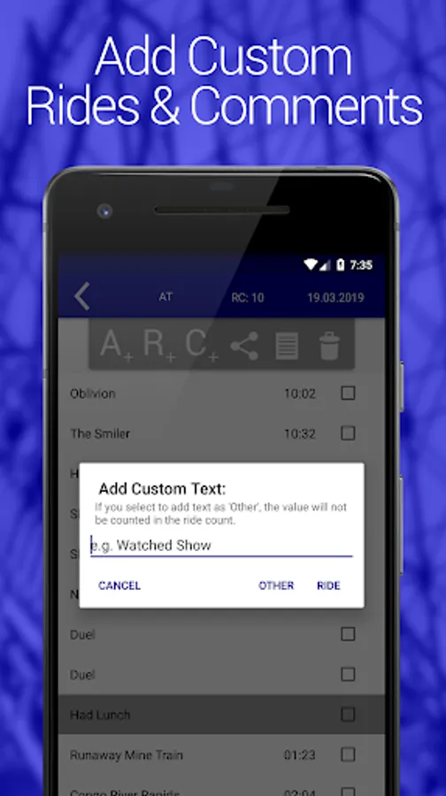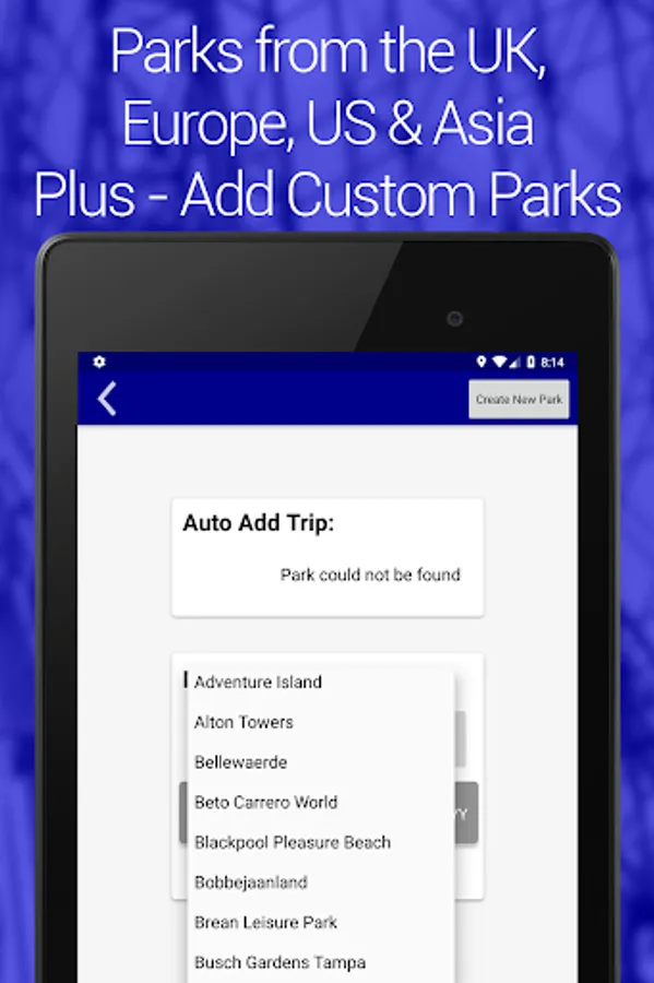 Want to count a specific park/ride that's not on the app? No worries, you can add custom parks and custom rides to the app!