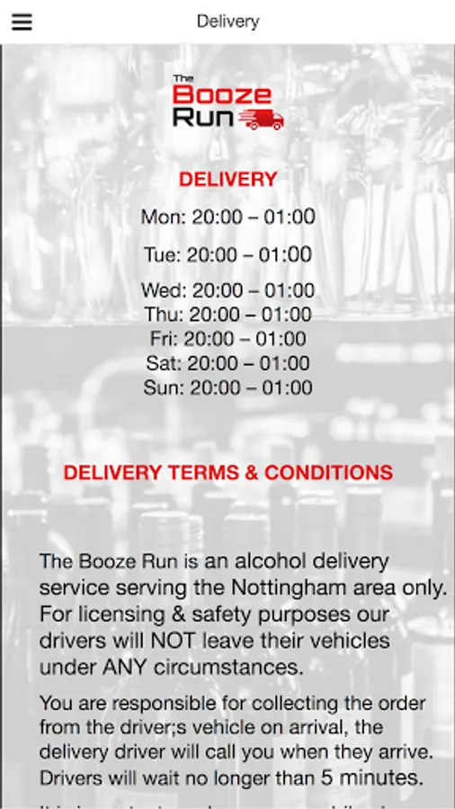 If you are in Nottingham and are looking for Alcohol Home Delivery near me, look no further The Booze Run is a one-stop solution for all kinds of Alcohol Delivery in Nottingham. Our online 24 Hour Alcohol Delivery in Nottingham delivers a variety of alcoholic beverages including Beer, Spirits, Cider, Wine, Champagne, Mixers, Alcopops, and Cigarettes.