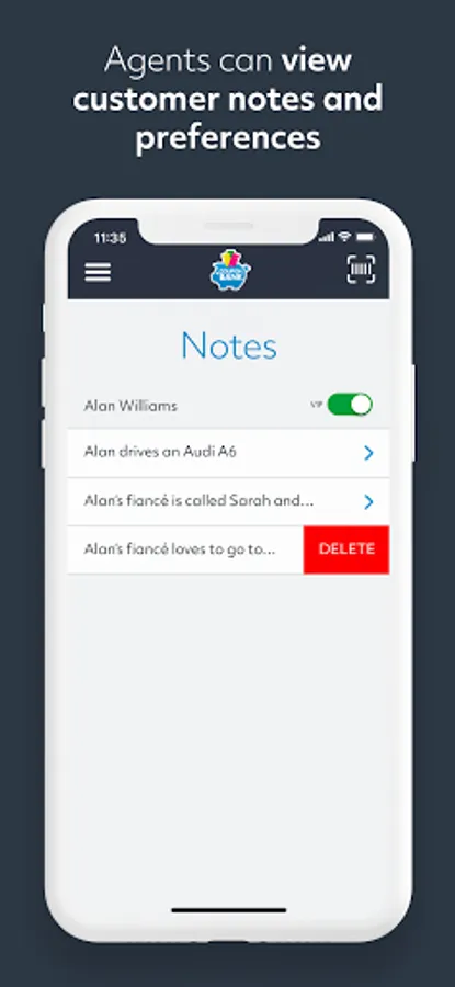 Agents can check-in your customers at your venue, viewing their preferences and customer status.