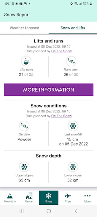 • Live lift and slope info (selected resorts) - make plans on the move with real-time info on lifts and slopes