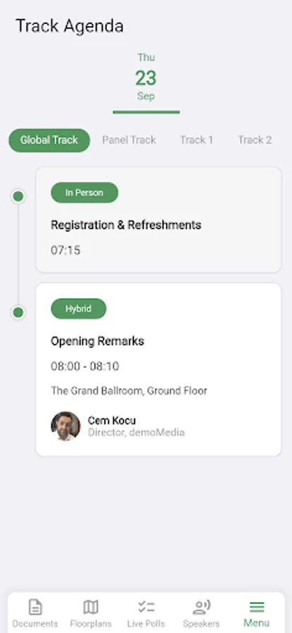 The BNP Paribas CIB Events mobile app is a feature rich companion tool for attendees utilising Eventogy's registration platform. With a host of interactive features that are sure to drive engagement and investment from your attendees, the app supports all the functions necessary from a world class, cross platform mobile app. From Live Polls to Surveys, interactive messaging tools to personalised scheduling, this corporate, enterprise level tool is the perfect bridge between your attendees and your event.