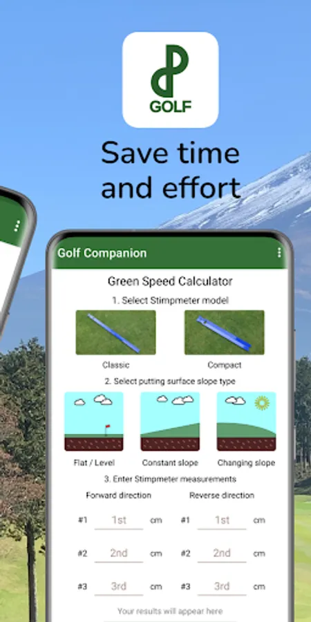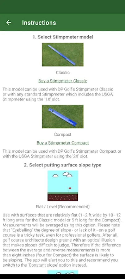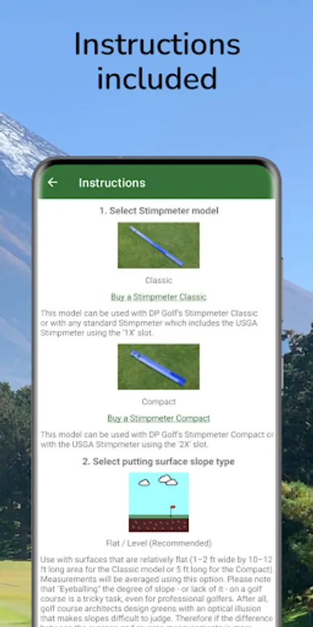 Can be used to calculate green speeds using either a Stimpmeter Classic (any standard Stimpmeter) or Compact (USGA 2X slot can also be used).