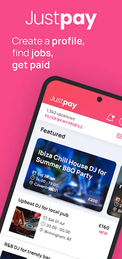 With JustPay, finding jobs in entertainment is easy. Use our filtered search to navigate our vacancies, sorting by date, fee, and distance to find the perfect job for you. Once you’ve set up your profile, you can also filter by your chosen specialties to find the jobs most relevant to you.