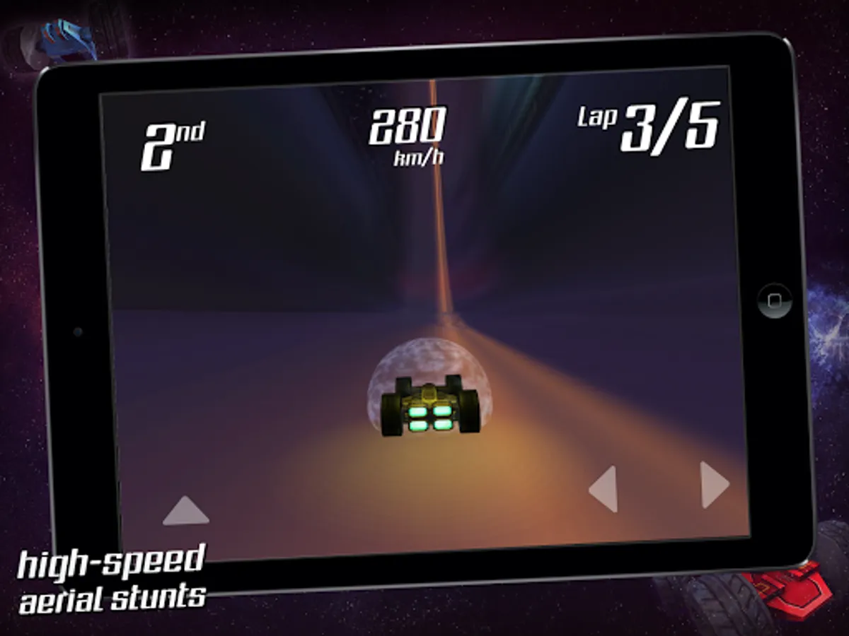 This high speed racing game features a gravity defying experience as you race across ceilings and walls at speeds of up to 600 km/h. Perform dynamic, high-speed aerial stunts in an intense driving experience powered by a brand-new physics engine that is the first of its kind in an Android game. You won't find this kind of gameplay anywhere else.