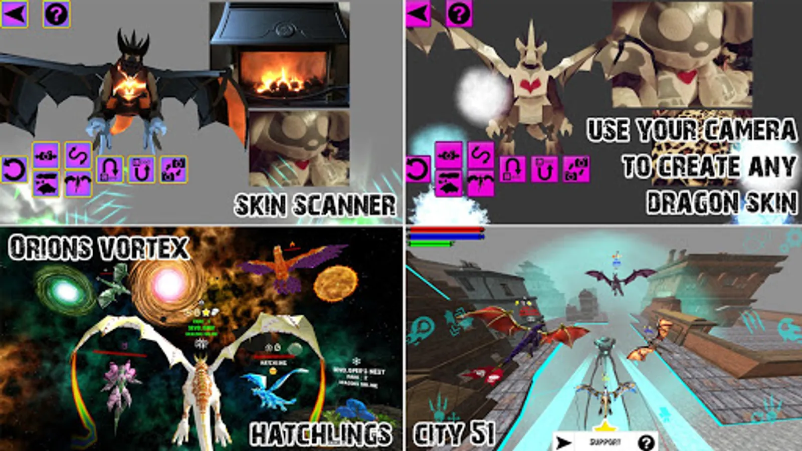 Create your 3D avatar, change its tail, trails, hats, and colors, or use the 'Skin Scanner' to create your own custom Dragon skins!