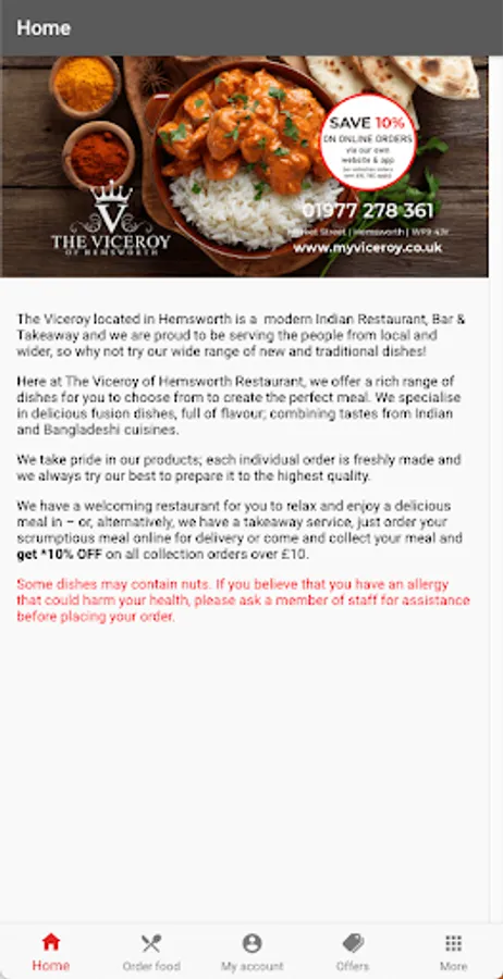 We have a welcoming restaurant for you to relax and enjoy a delicious meal in – or, alternatively, we have a takeaway service, just order your scrumptious meal online for delivery or come and collect your meal and get *10% OFF on all collection orders over £10.The Viceroy located in Hemsworth is a modern Indian Restaurant, Bar & Takeaway and we are proud to be serving the people from local and wider, so why not try our wide range of new and traditional dishes!