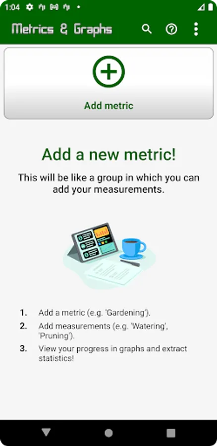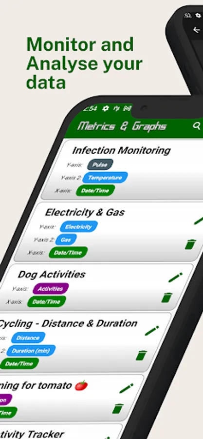 Metrics and Graphs is your ultimate Tracker for your Activities, Data, Habits, or Goals. Acting as a comprehensive journal, it enables you to Record, Track, Monitor, and Analyse your data, providing integrated statistics. Track measurements about health, finances, gardening, activities, and any other metric or event that comes to your mind!