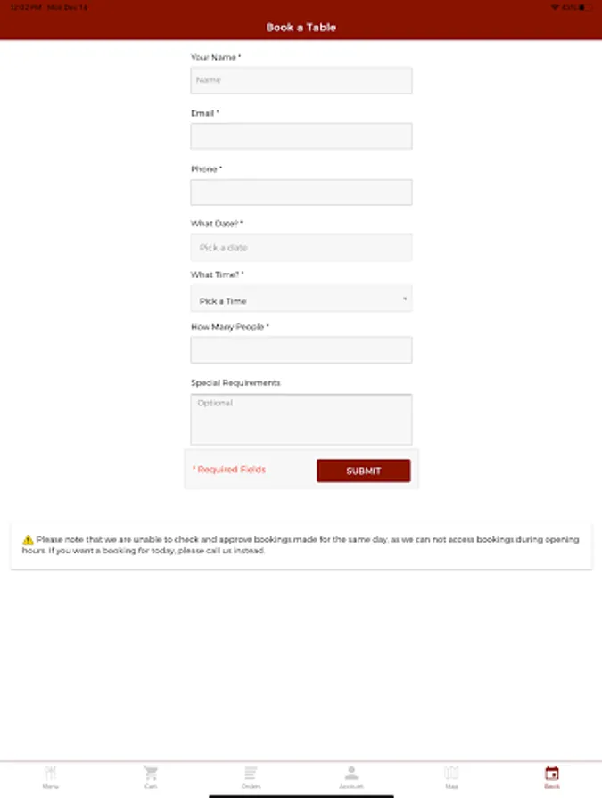 Download our mobile app and place your order for collection, pay by card and book a table.