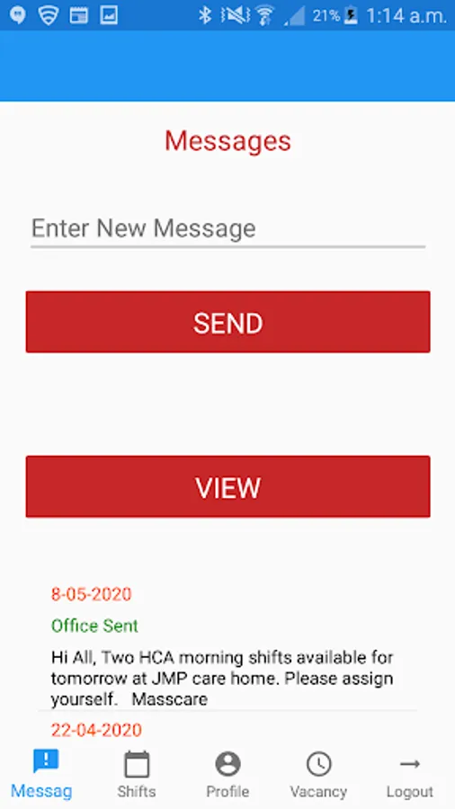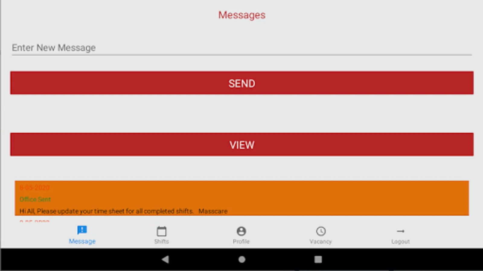 Install Masscare to get instant alerts from your agency about vacancy or other messages. Assign suitable shifts yourself, view your shift details and conduct two-way communications with your agency. No cost, No calls, No time wasted. This cloud solution provides everything at your finger-tips.