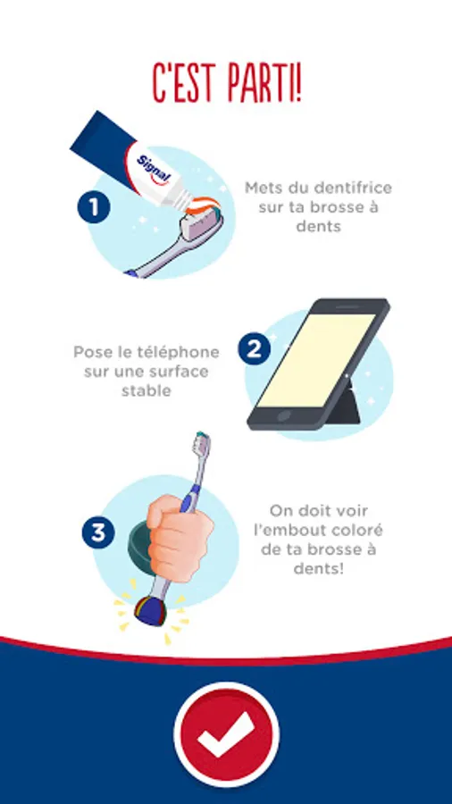 The Super Brush app, created by Signal experts, is committed to promoting good brushing habits to prevent cavities from developing in children. This experience encourages the whole family to brush their teeth morning and evening for 2 minutes, turning brushing into a fun activity!
