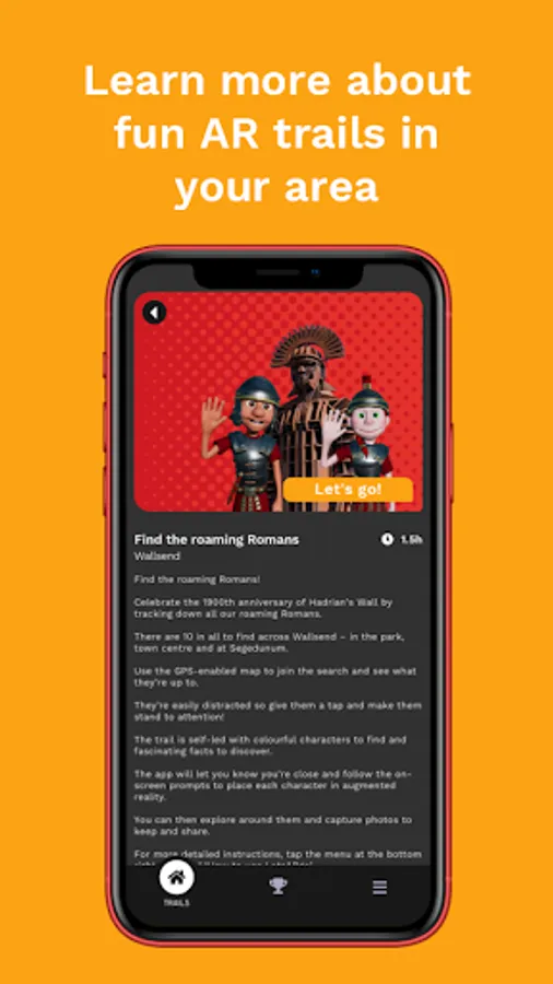 Download the free app and start exploring – more trails are added all the time so there are always brand new AR wonders to discover. Learn, play, discover and enjoy the augmented world around you with letsARgo.