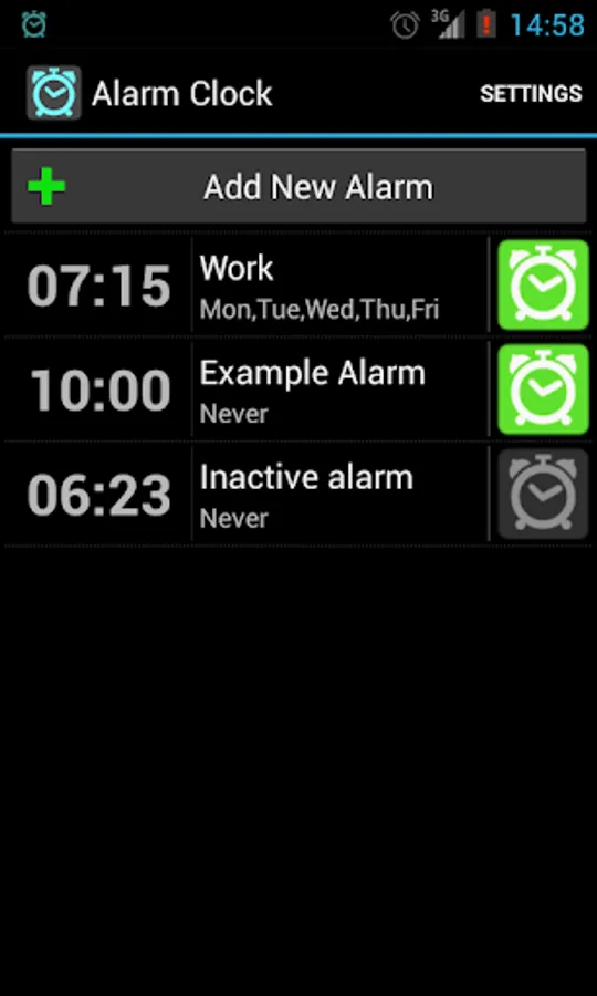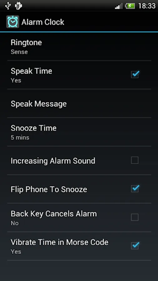 Simple and intuitive alarm clock and home screen clock widget. Set one-off or repeating alarms with different options such as increasing sound, vibrate. Let it to speak the time when alarm goes off as well as your own message.