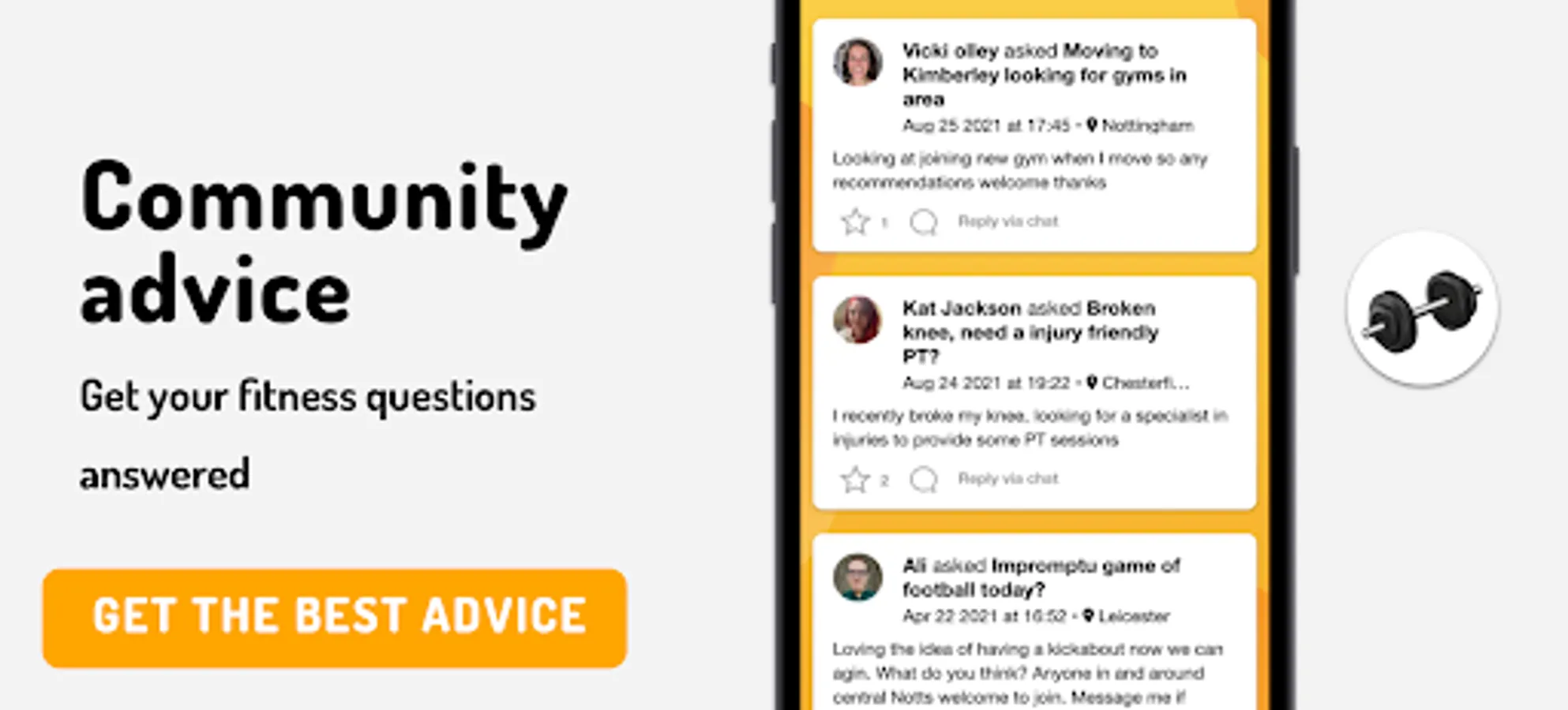 👥 Post questions about fitness and health on our community page