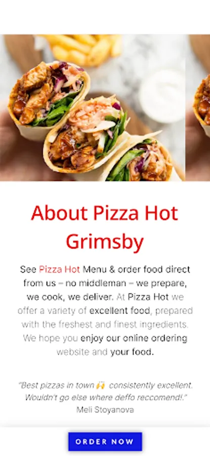 Order food online in Grimsby! Download our official mobile app and Order DIRECTLY from Pizza Hot located in 1 Wingate Rd, Grimsby DN37 9DR.