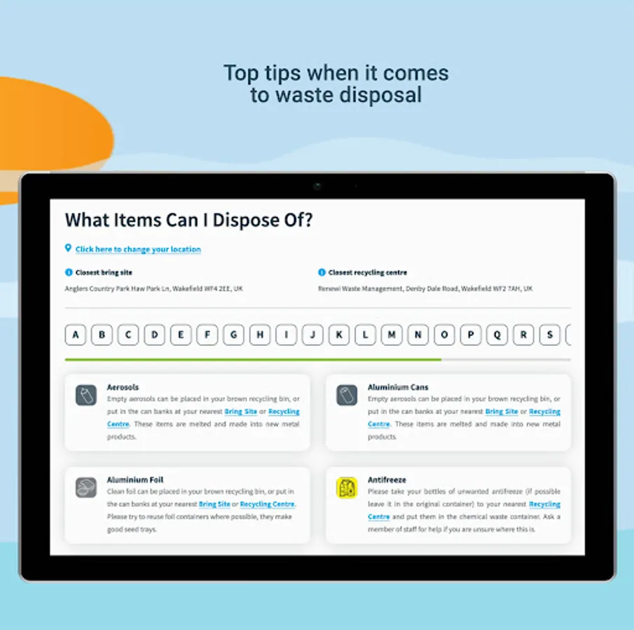 Through the app you'll have access to top tips, including information on the use of your kerbside wheelie bins as well as what you can or cannot bring to your local household disposal centres.