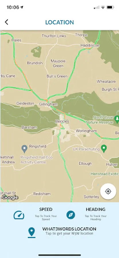- See your current location, speed and heading.
