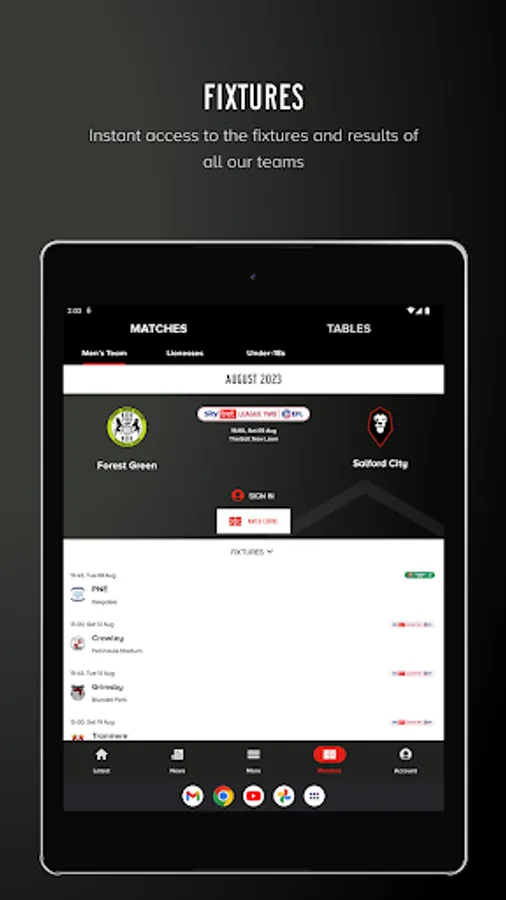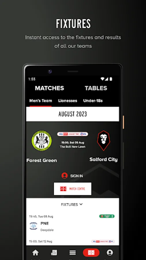 - Fixtures & Results: Use the app to keep up to date with upcoming matches and recent results.