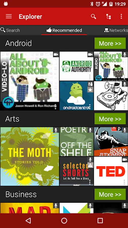 * Great Explore & Discover section with Recommended, iTunes search, YouTube channels, all the top networks scanned regularly.