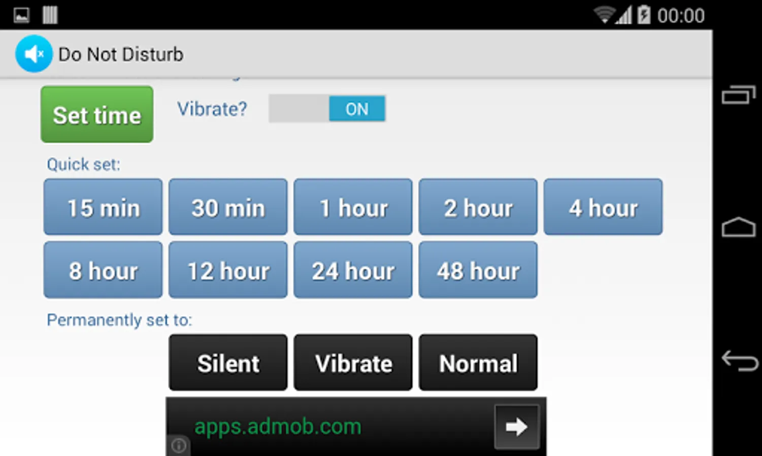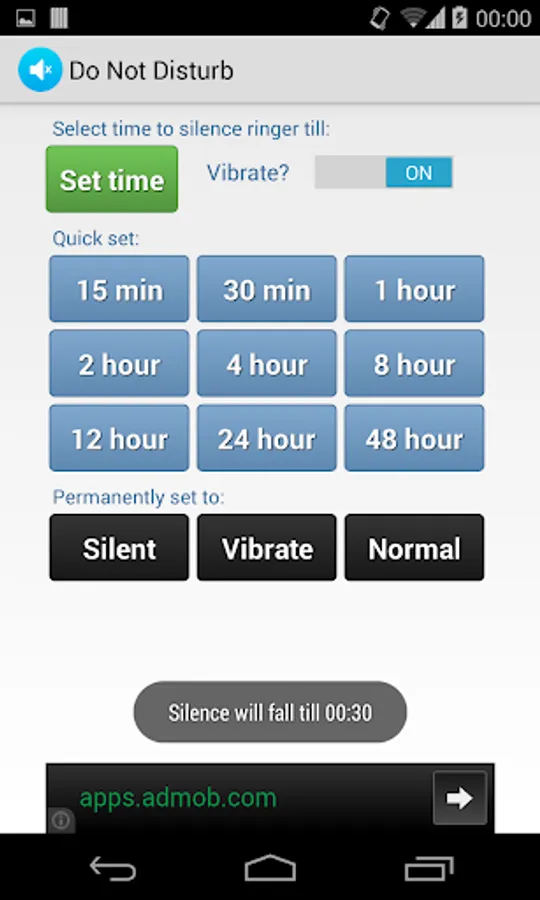 Fed up of your phone going off during meetings, sleeping or prayers? Need a little quiet time? Do Not Disturb quickly silences your phone so you don't get disturbed by calls and SMS texts and turns the ringer back on for you at the time you set. Quick set buttons allow you to shush your phone for 15 minutes or up to 8 hours.