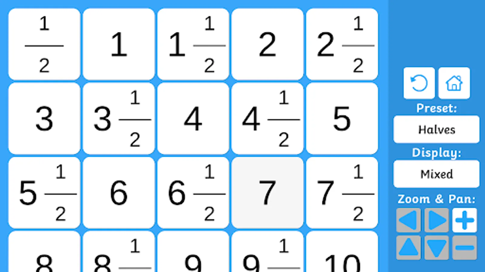 This one will help children practise counting in halves, quarters, fifths and eighths. Plus, there are two display modes, so you can choose which way you want to display the numbers.