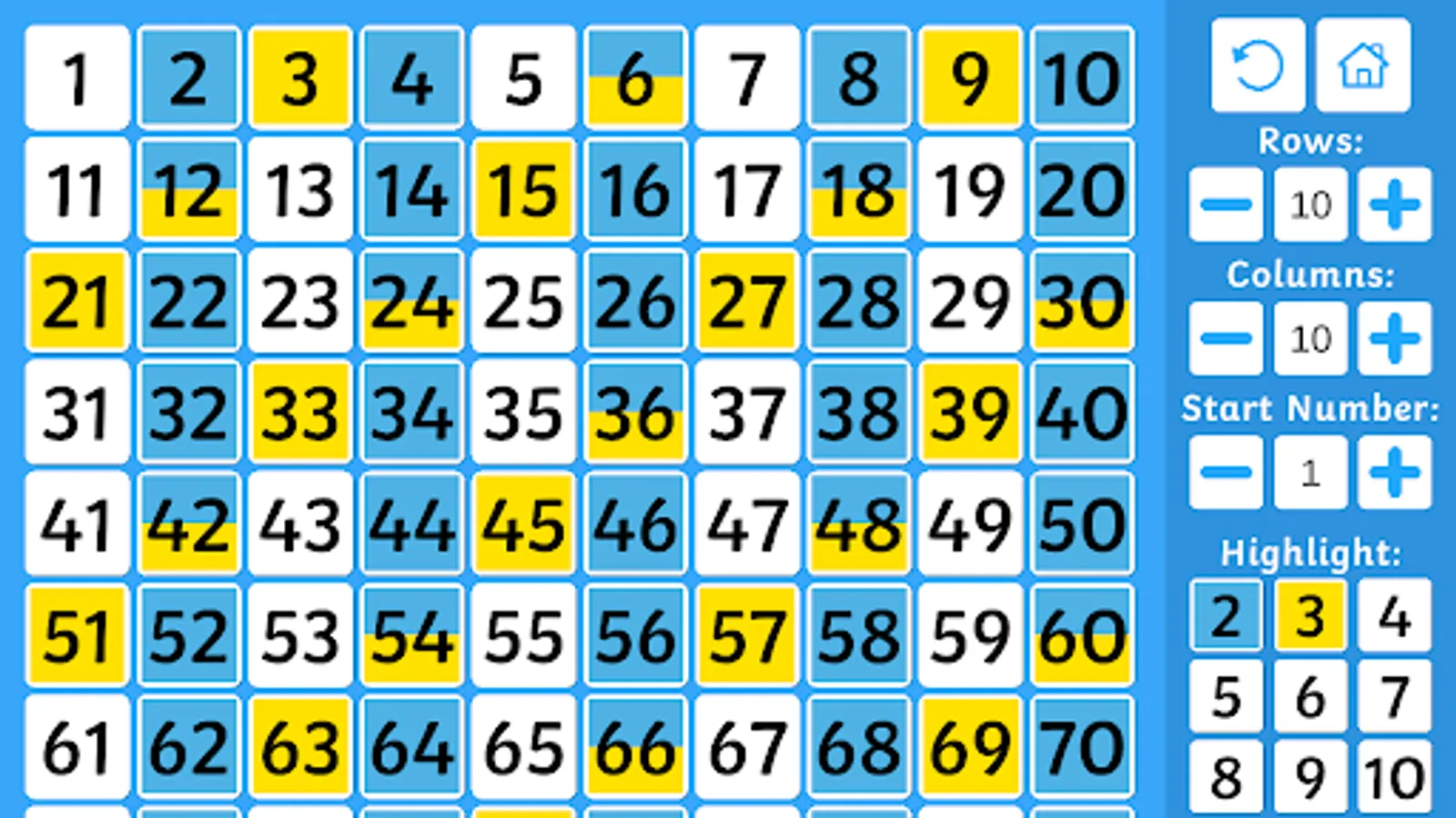 It offers you a classic hundred square grid, which can be customised to your specific needs. There’s a vibrant new highlighting option - a powerful and flexible tool to help you teach counting in multiples.