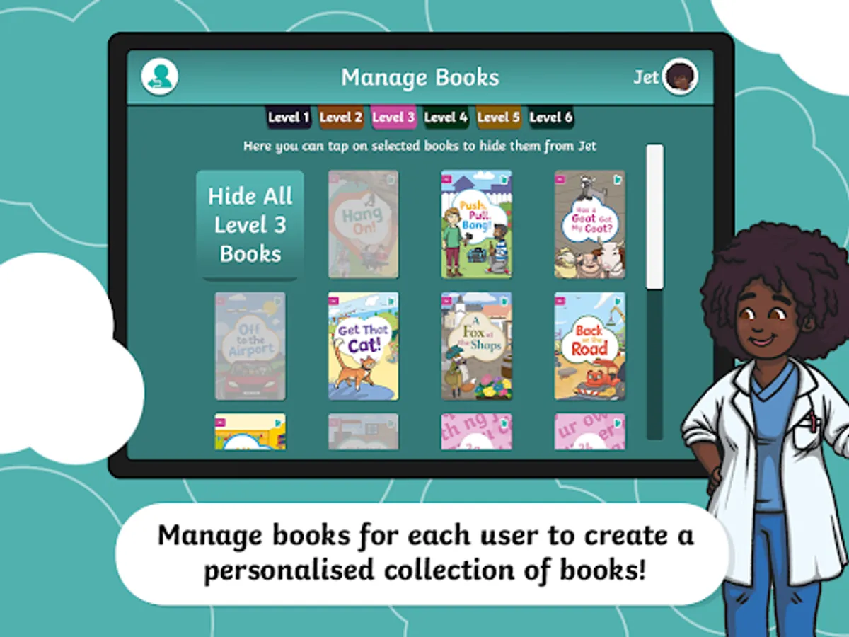 - Navigate the library by switching between reading levels. (1A - 6C)