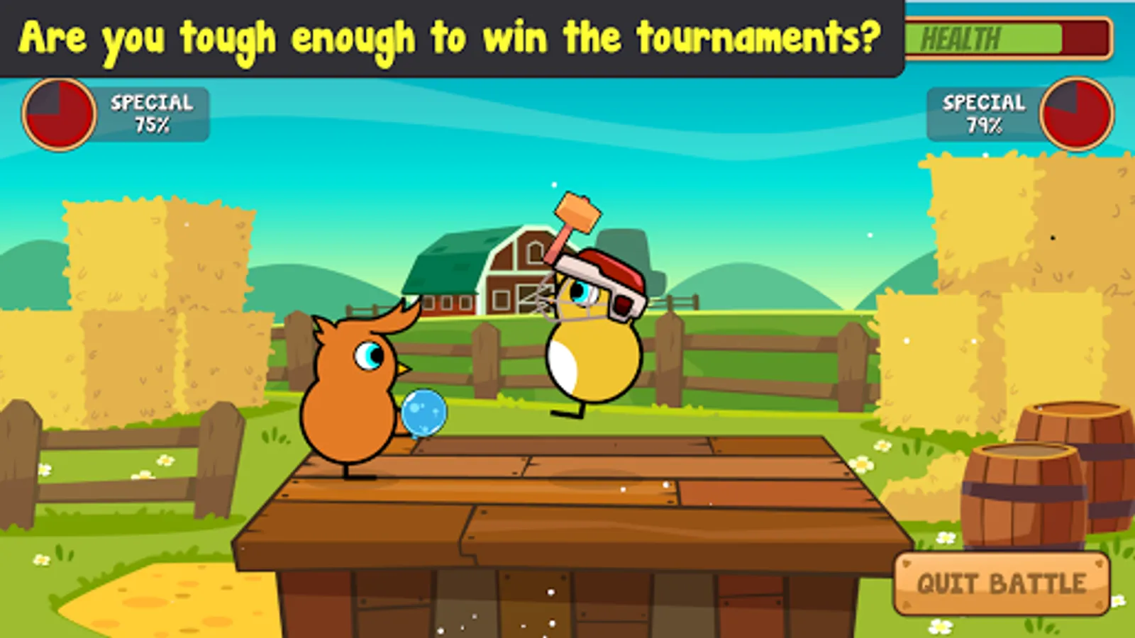 Train your duck's power, health, defence, speed, and special attack abilities in 25 brand new mini games. Explore the world battling other ducks, entering tournaments and completing quests to become the greatest duck battler of all time.