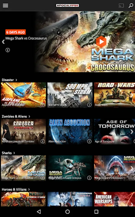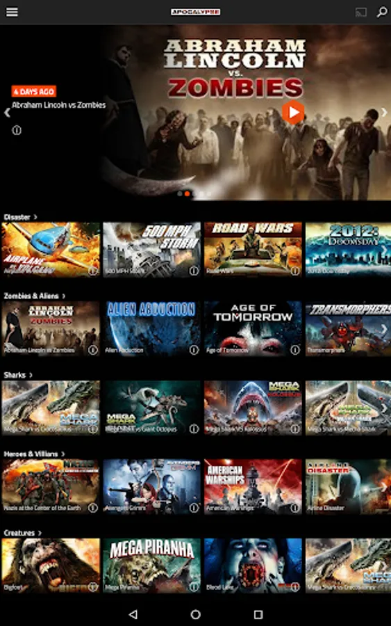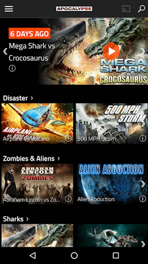 Horror! Action movies! Thrillers! APOCALYPSE allows you to watch epic movies anywhere anytime, on any mobile or connected device — while running for your life, or in the comfort of your own home… or fall-out shelter.