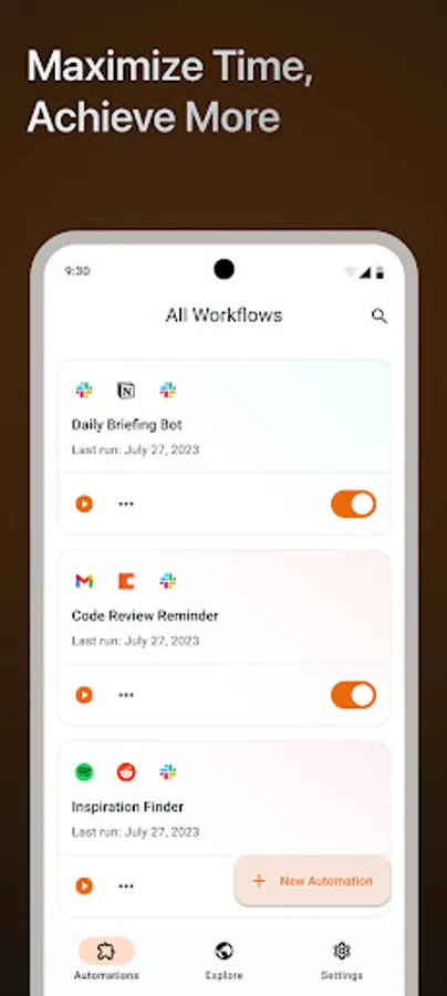 Streamlined Workflows: Design custom workflows that connect and automate services and actions. Create a smoother and more efficient daily routine.