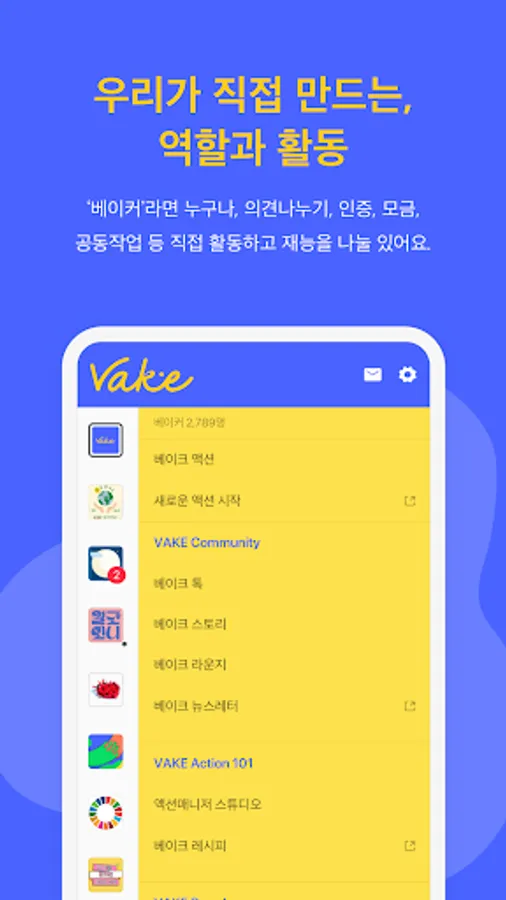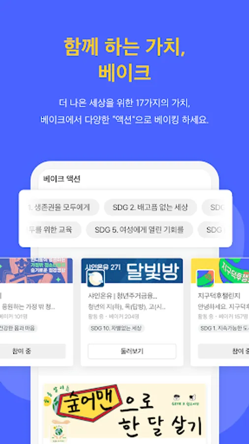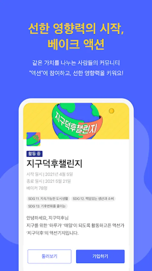 변화를 부르는 실천, “액션“에서 베이커들과 함께 소통하고 힘을 모을 수 있어요.
