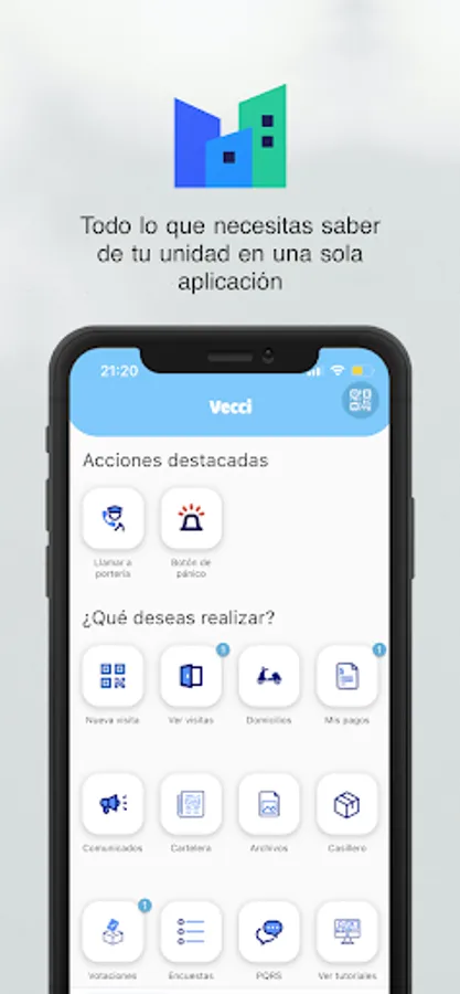 - Improve communication, allowing you to authorize the entry of visitors and keeping you updated with the virtual billboard.