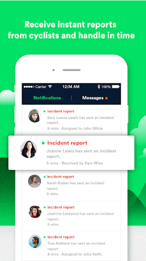 Enable event participants to send incidence report that includes bib number and live location to organizer.