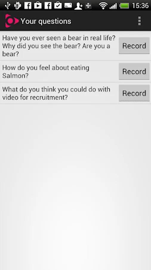 The Verbate app enables android users to film, and upload responses to Verbate video surveys & feedback invites. Log in using the email or phone number the invite was sent to, and you’ll see the list of questions to answer on video displayed.