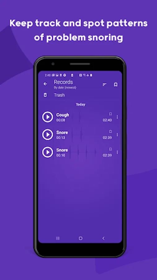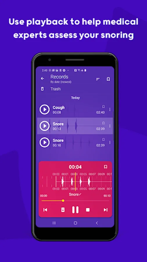Snore and Cough App records your snoring and coughing sound made during your sleep, you can then listen to them the next morning.