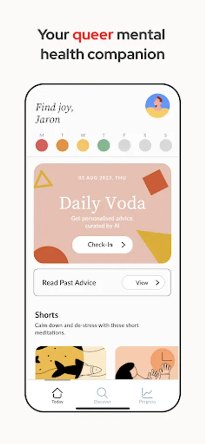 Voda is the daily mental health companion for LGBTQIA+ people.