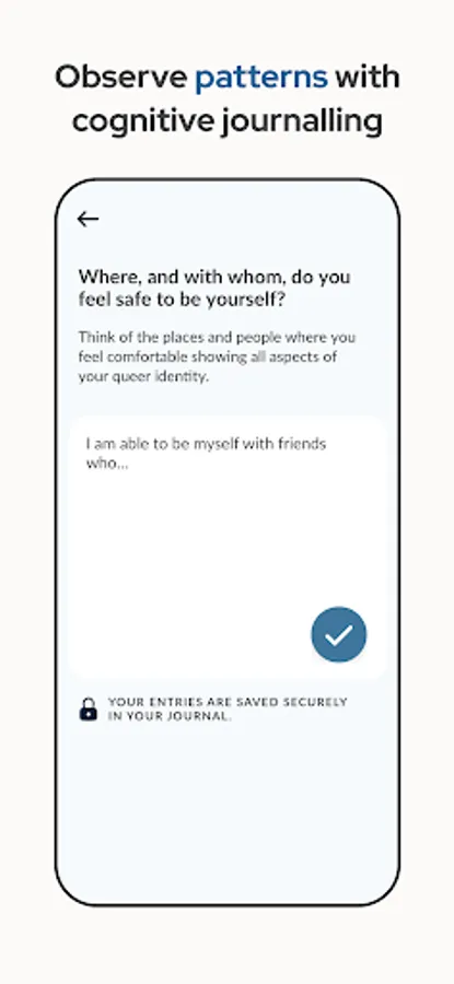 Your safety and privacy are our top priorities. We encrypt all cognitive journaling exercises to ensure they remain exclusively available to you. Rest assured, no data is shared with third parties.