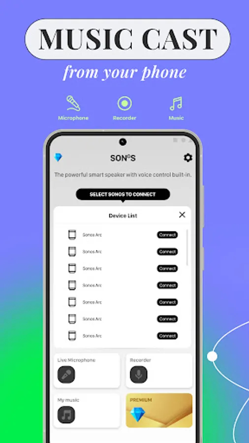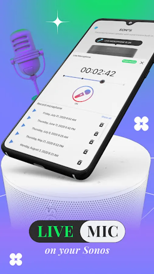 Maximize functionality of your Sonos speaker with flawless built-in live micro and music cast. Turn your mobile phone into the best Sonos speaker attachment, using the app as a cool digital microphone and an ultimate music player for Sonos S1 and Sonos S2. The app can also work as a recorder, then you can play that recorder directly to Sonos speaker with ease.