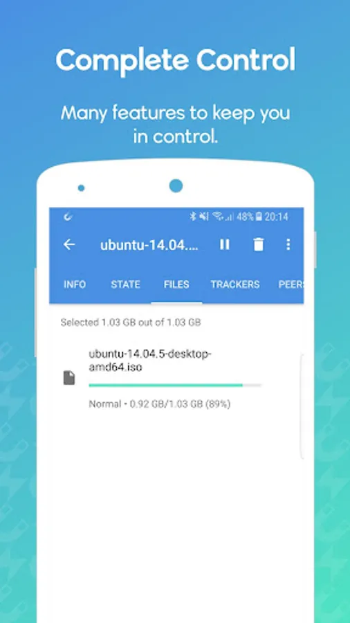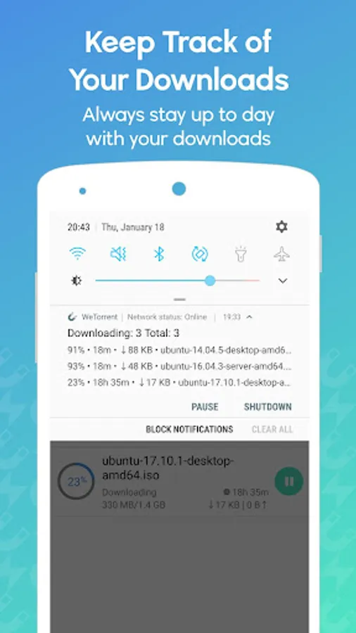 Downloading torrents with WeTorrent is simple - download files directly to your phone/tablet in one tap.