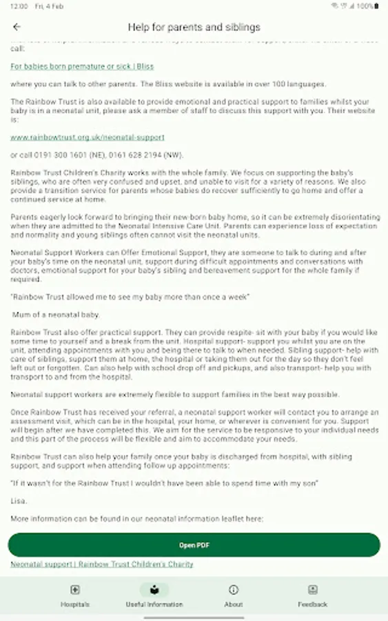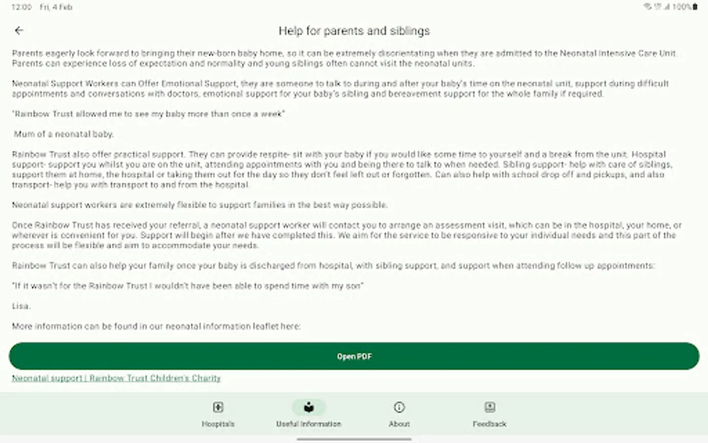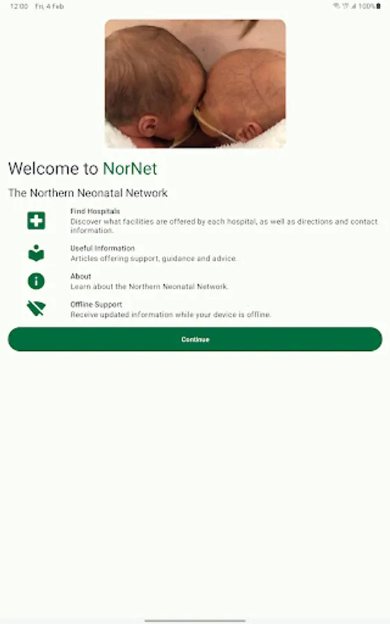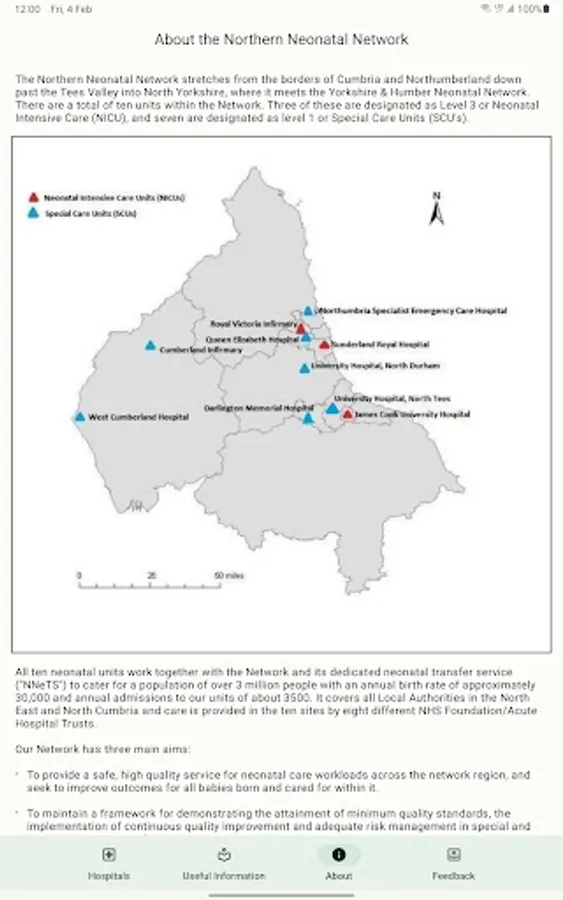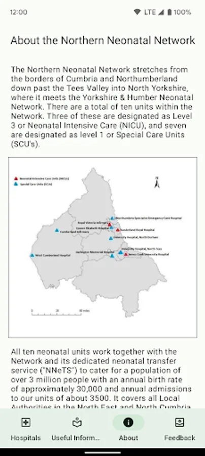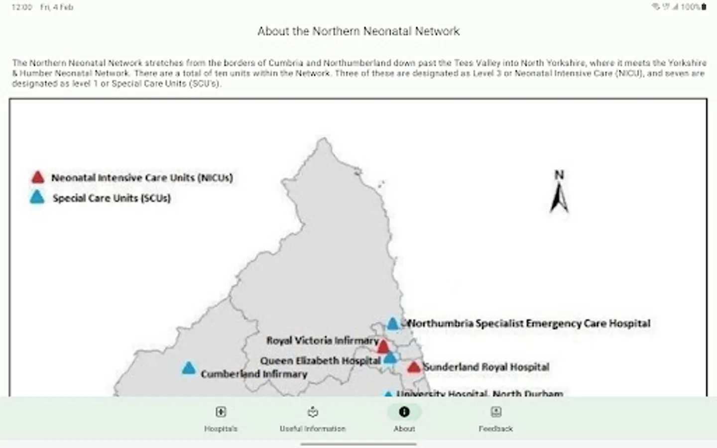 Information about the Northern Neonatal Network of hospitals. This app includes information for families of premature and sick babies, with key information about each hospital and unit available.