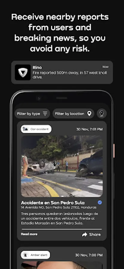 Nearby report alerts: Stay up to date with the latest news in your area! Receive notifications of nearby reports from other users and breaking news in your city.