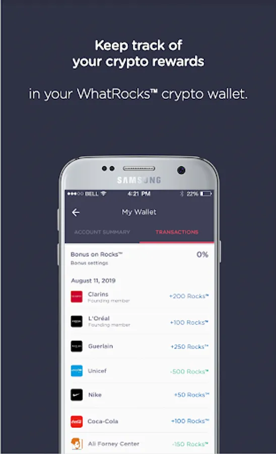 WhatRocks is your crypto wallet for good that enables you to collect complimentary crypto rewards called Rocks™ from brands that thank you for: