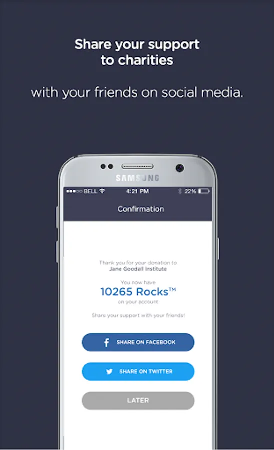 Enter the code WELCOME500 at signup: you will get a 500 Rocks™ welcome credit to start making donations right away!