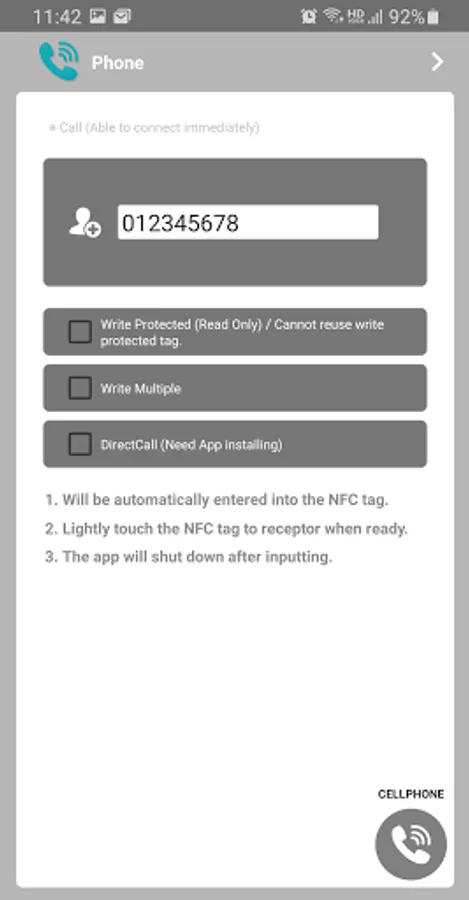 If you want to receive an urgent call from someone such as a customer or co-worker who doesn’t know your phone number, you no longer need to write your phone number on a post-it. In just 3 steps you can put your phone number into a NFC tag and a user can call you directly without dialing!