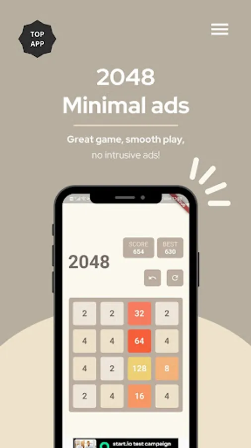 Are you frustrated by seeing constant ads when playing 2048? Try this extra smooth version! It's only got a tiny banner ad at the bottom and absolutely no interstitials or video ads! No more pesky ads to ruin your play experience!