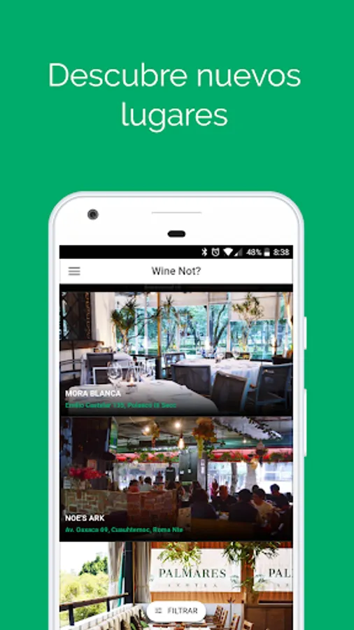 We're WineNot? the first app in Mexico that offers you 1 drink every day in the trendiest venues of Mexico City.