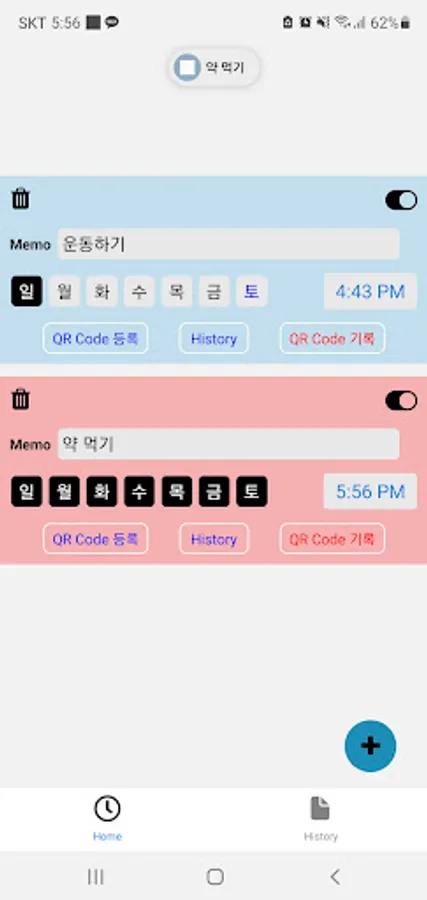 It helps to create a new habit by making it possible to record only through the registered QR Code. After the alarm sounds, scan the QR Code within 30 minutes to make a record.