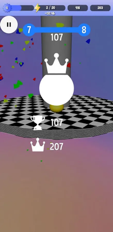 Your ball smashes like a brick through colorful platforms that block its descent, but if you hit a black one, it's all over! Your ball shatters to pieces and you have to start your fall all over again.
