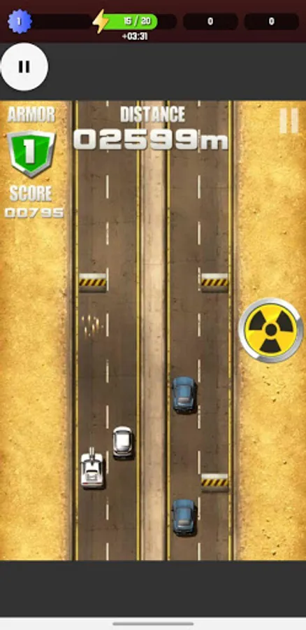 Those, and the power-ups you can gather on the road, will help you to improve your highscore that will be made up by the distance you cover.